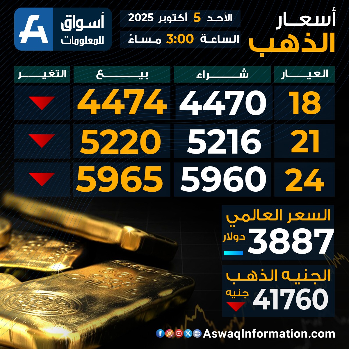 سعر الذهب في مصر الأحد 5 أكتوبر 2025