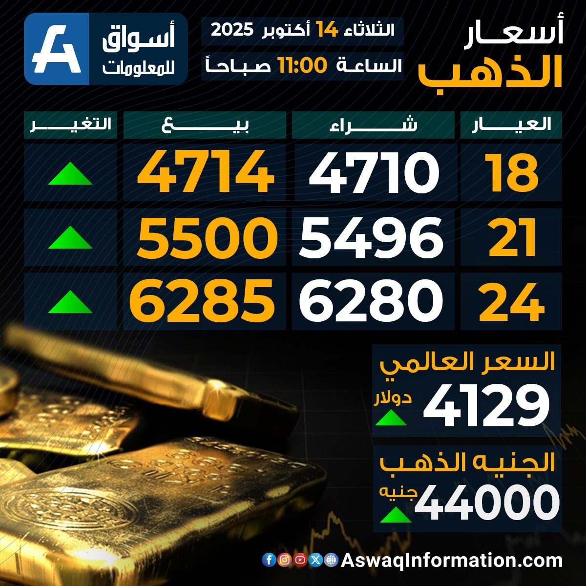 سعر الذهب في مصر الثلاثاء 14 أكتوبر 2025