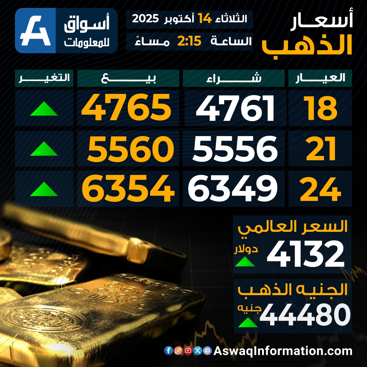 سعر الذهب في مصر الثلاثاء 14 أكتوبر 2025