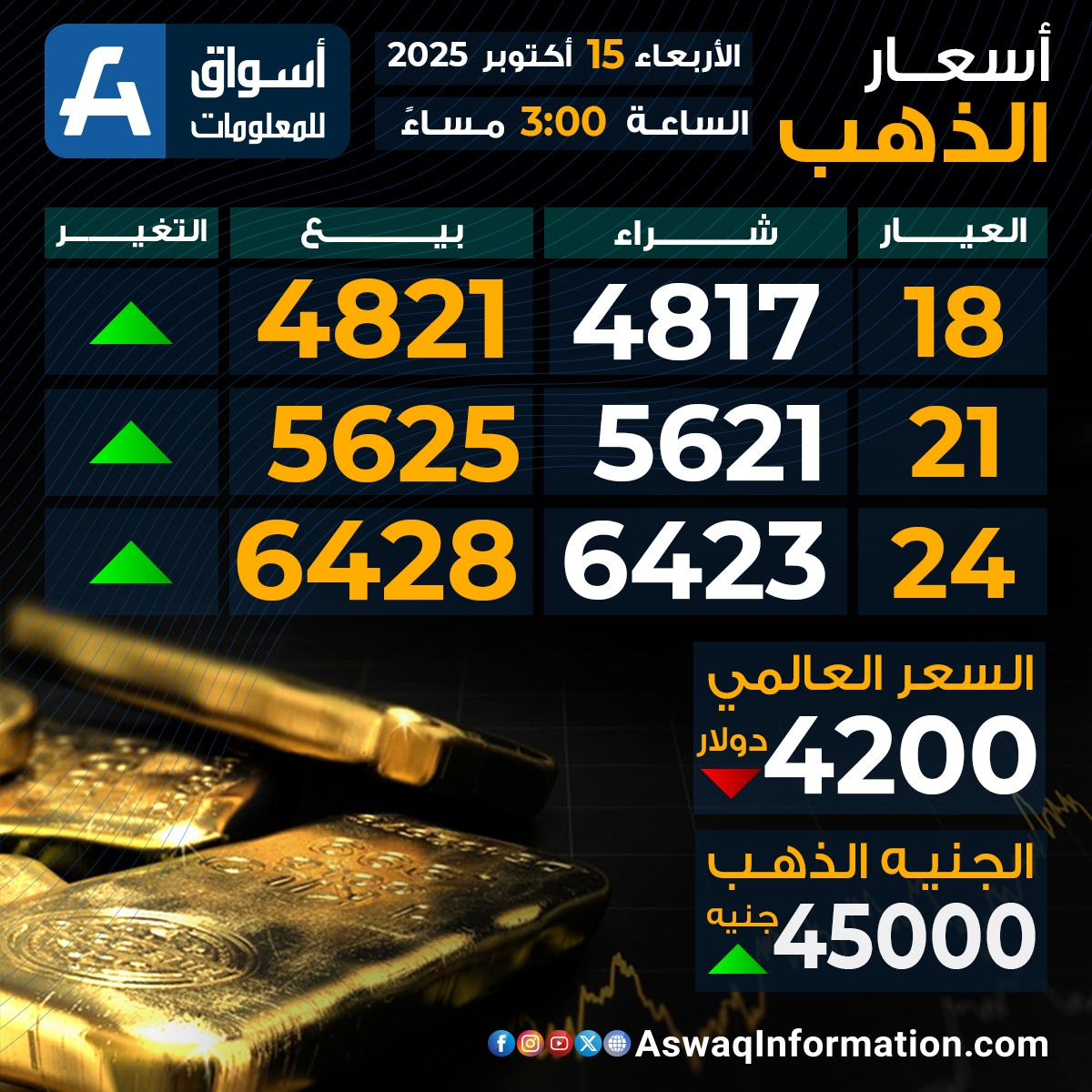سعر الذهب في مصر الأربعاء 15 أكتوبر 2025