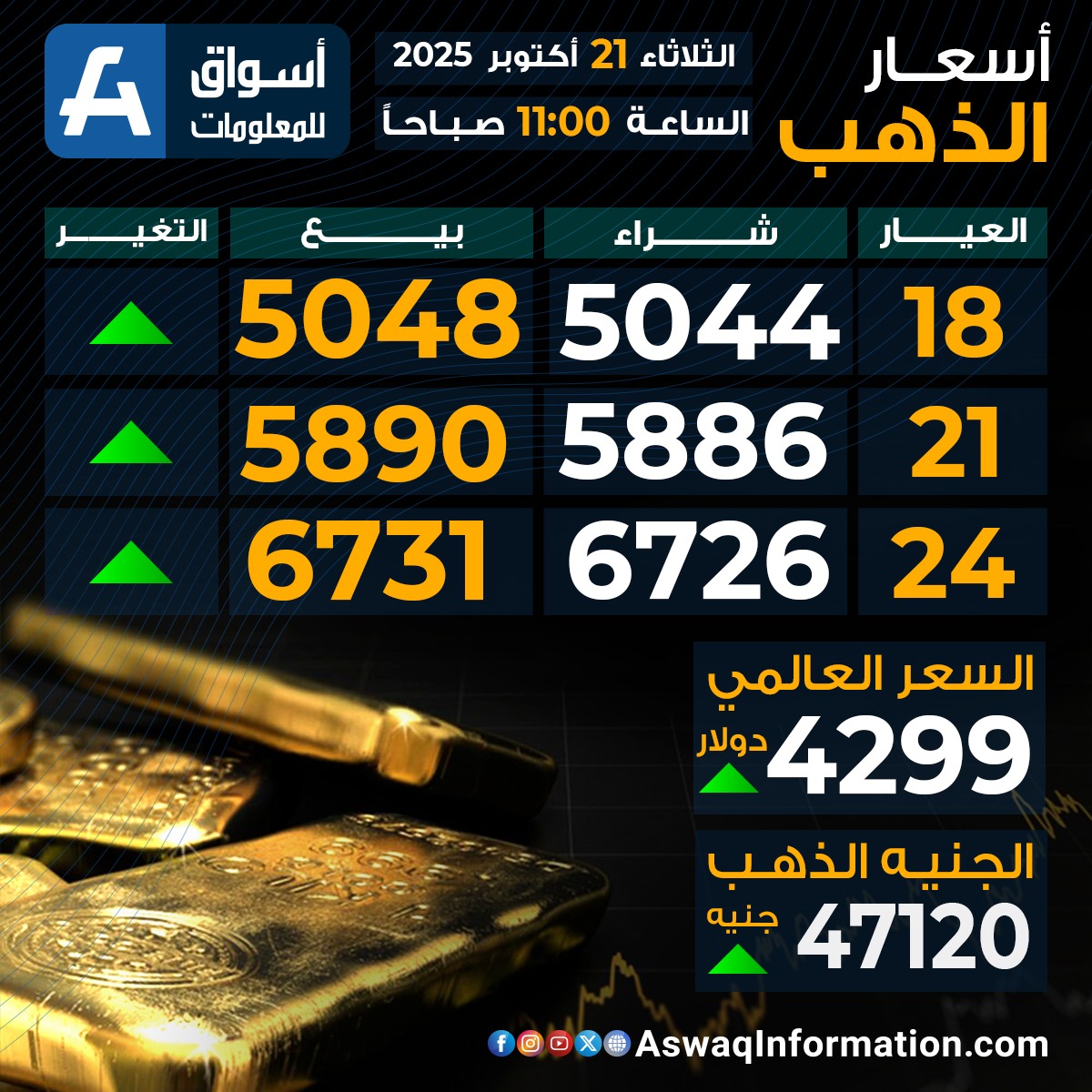 سعر الذهب في مصر الثلاثاء 21 أكتوبر 2025