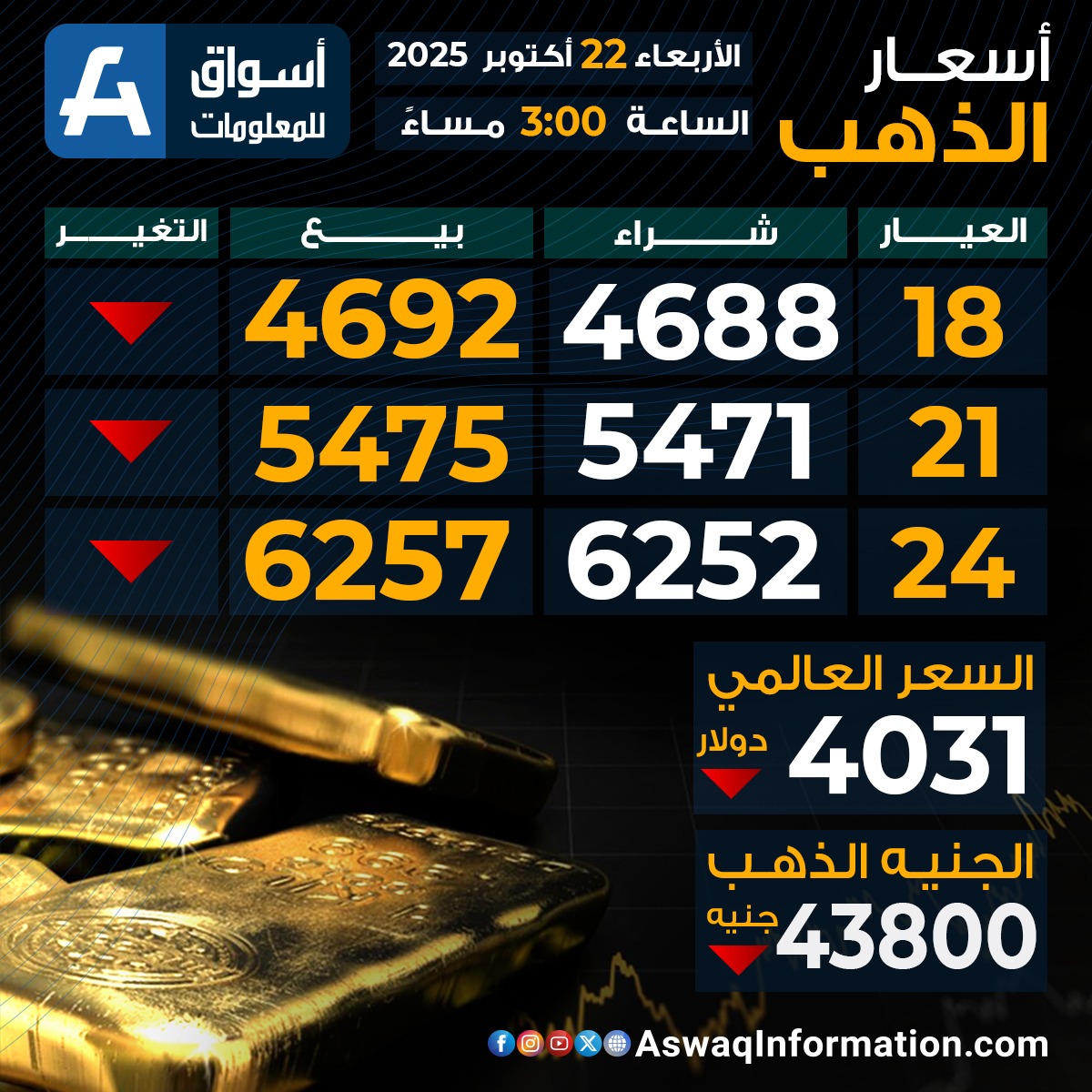 سعر الذهب في مصر الأربعاء 22 أكتوبر 2025