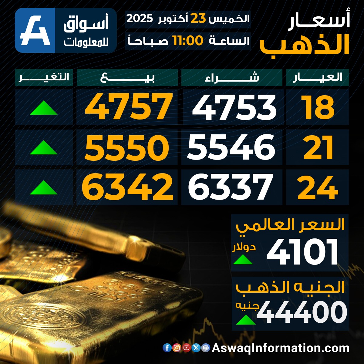 سعر الذهب في مصر الخميس 23 أكتوبر 2025