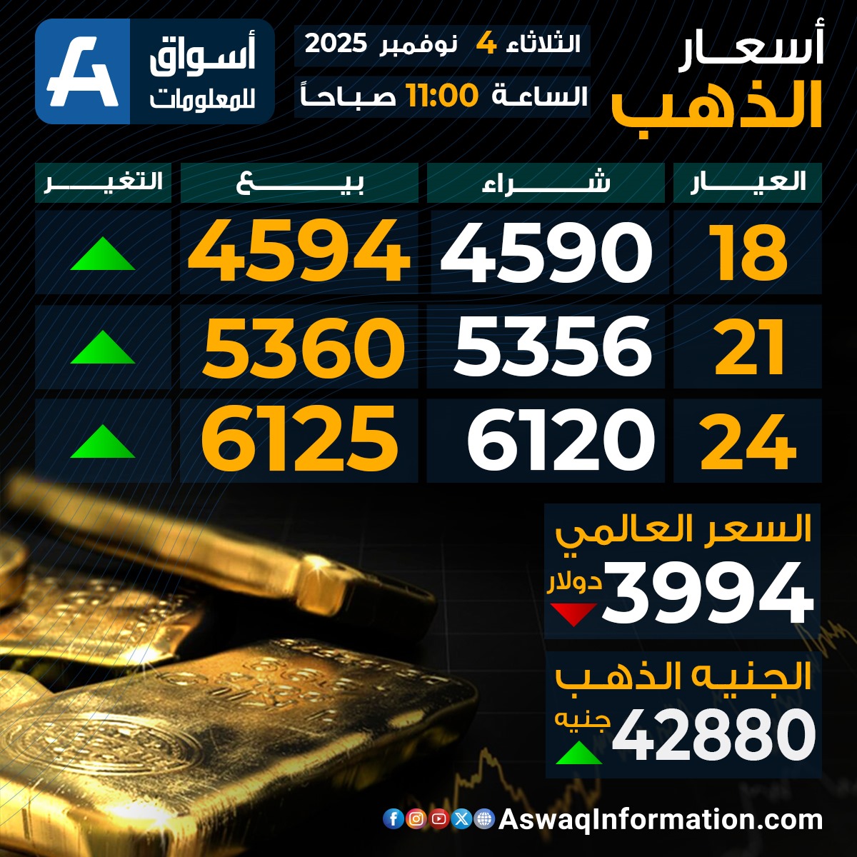 سعر الذهب في مصر الثلاثاء 4 نوفمبر 2025