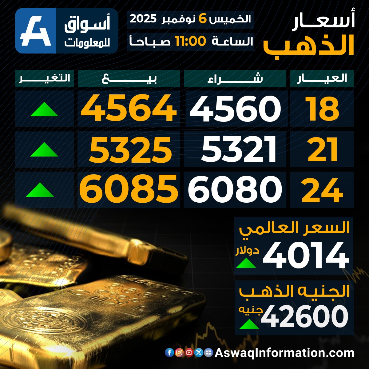 سعر الذهب في مصر الخميس 6 نوفمبر 2025