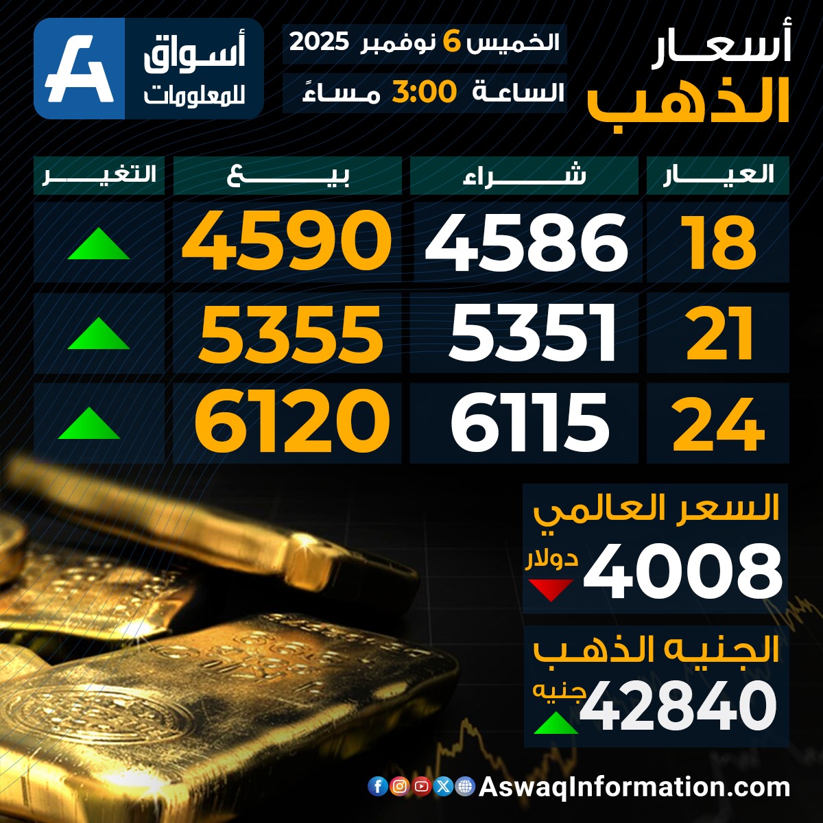سعر الذهب في مصر الخميس 6 نوفمبر 2025
