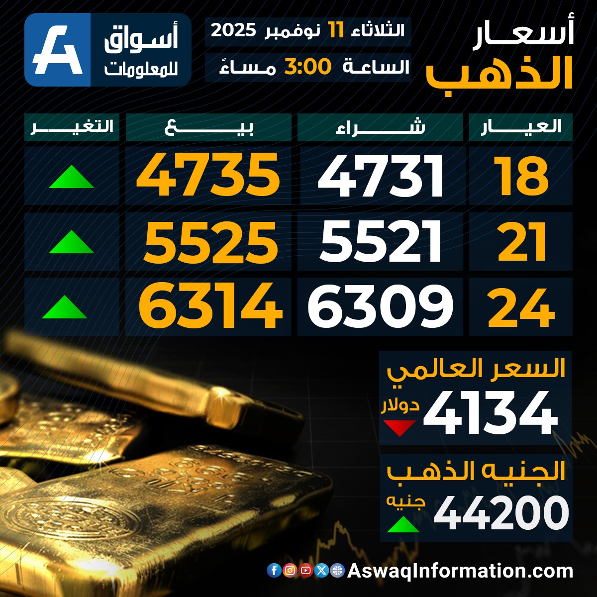 سعر الذهب في مصر الثلاثاء 11 نوفمبر 2025
