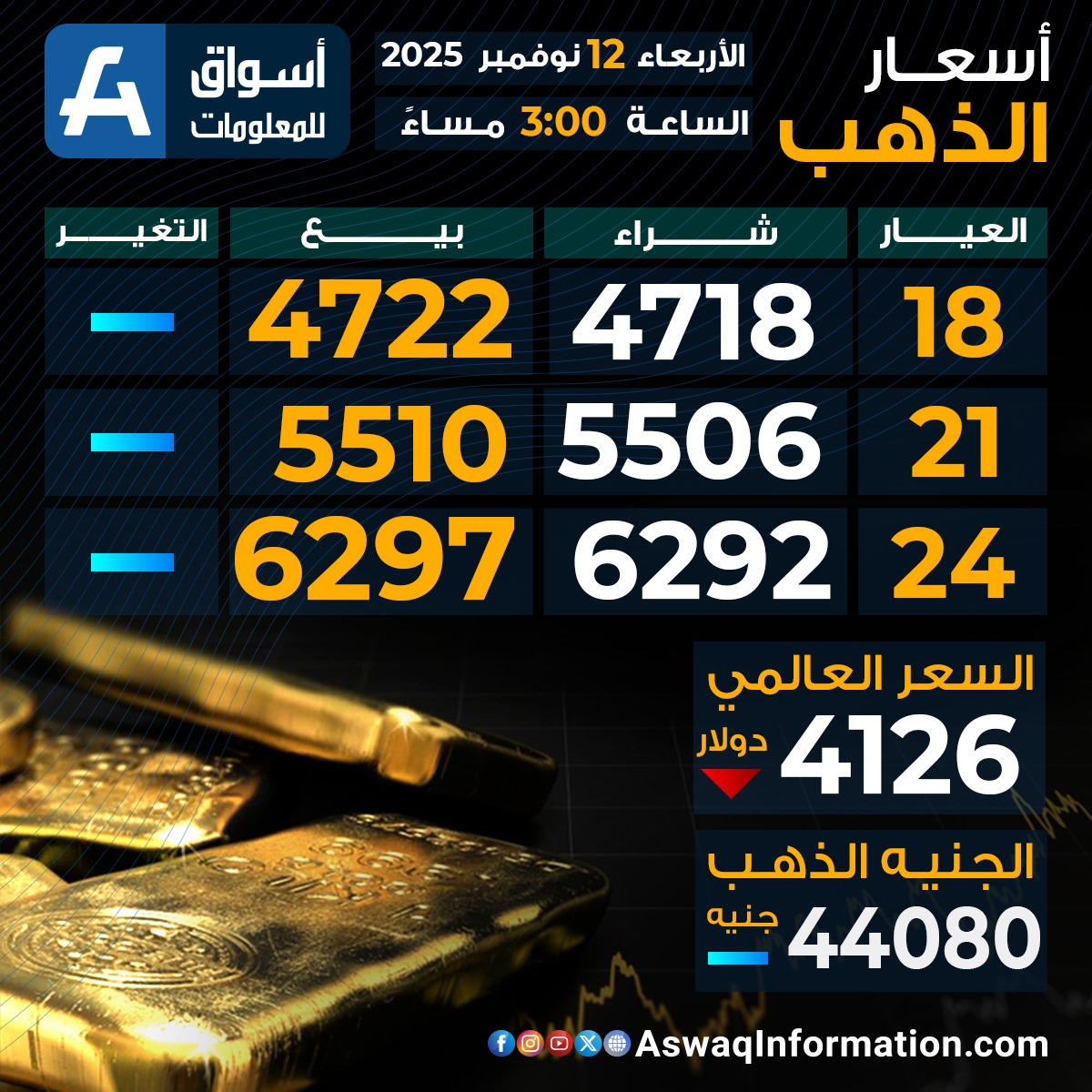 سعر الذهب في مصر الأربعاء 12 نوفمبر 2025