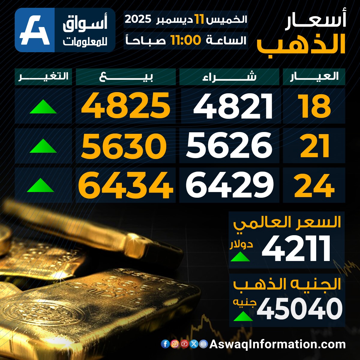 سعر الذهب في مصر الخميس 11 ديسمبر 2025