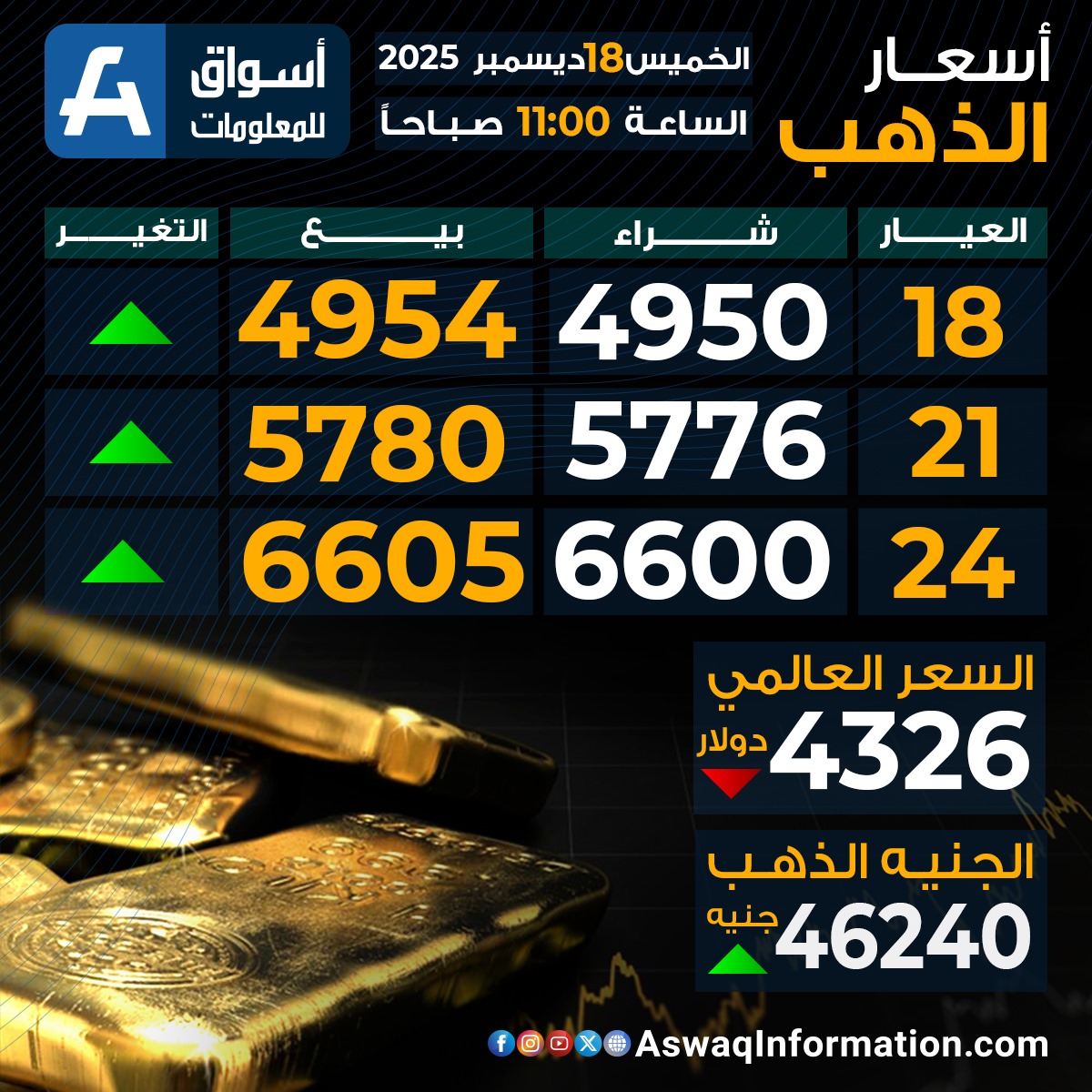سعر الذهب في مصر الخميس 18 ديسمبر 2025