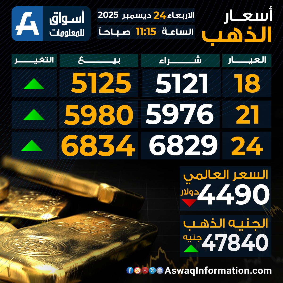سعر الذهب في مصر الأربعاء 24 ديسمبر 2025