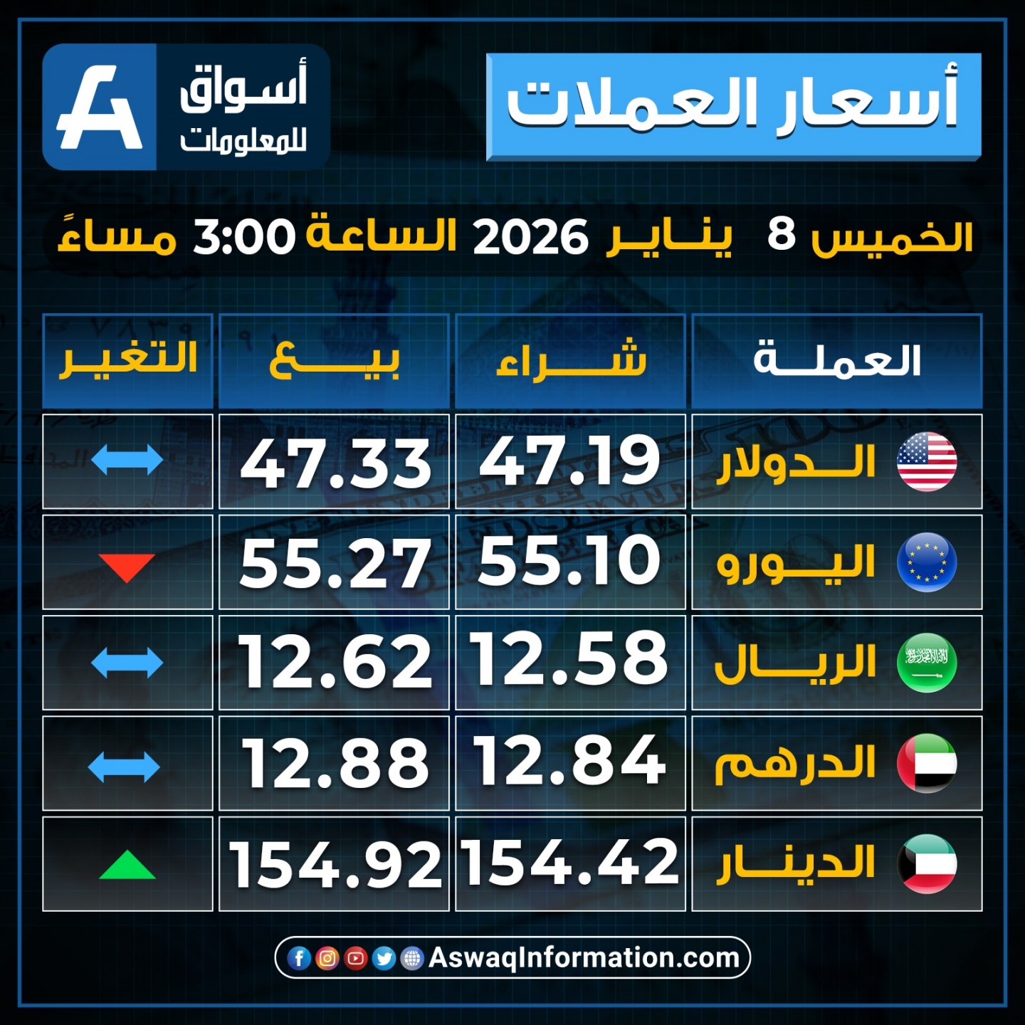 وفي ظل هذه التحركات، يواصل المواطنون والمستثمرون متابعة تغيرات سعر الدولار بشكل دقيق، لما لها من تأثير مباشر على أسعار السلع والخدمات، خاصة المستوردة، إلى جانب تأثيرها على السوق المالية وأسعار الذهب والعملات الأخرى.