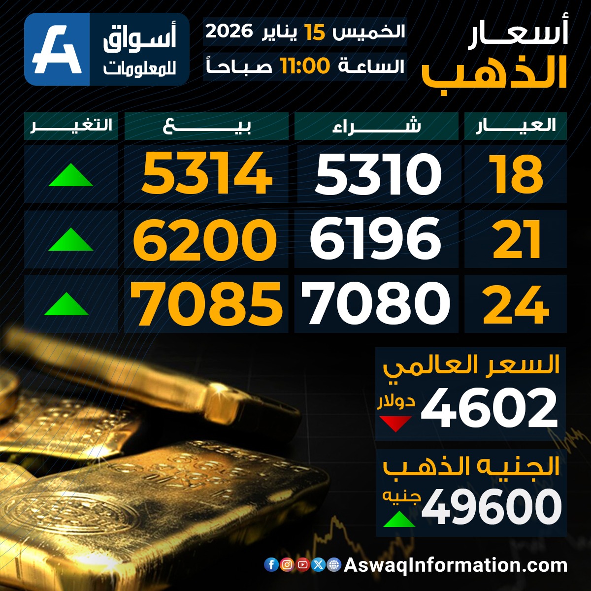سعر الذهب في مصر الخميس 15 يناير 2026