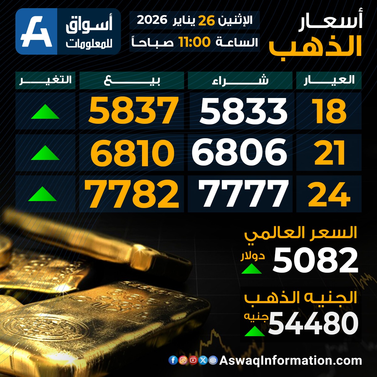 سعر الذهب في مصر الإثنين 26 يناير 2026