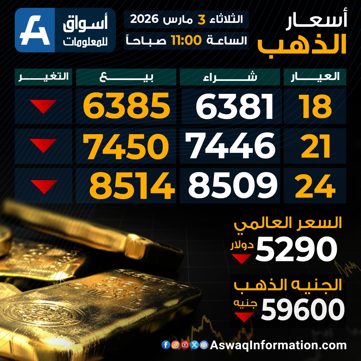 سعر الذهب في مصر الثلاثاء 3 مارس 2026