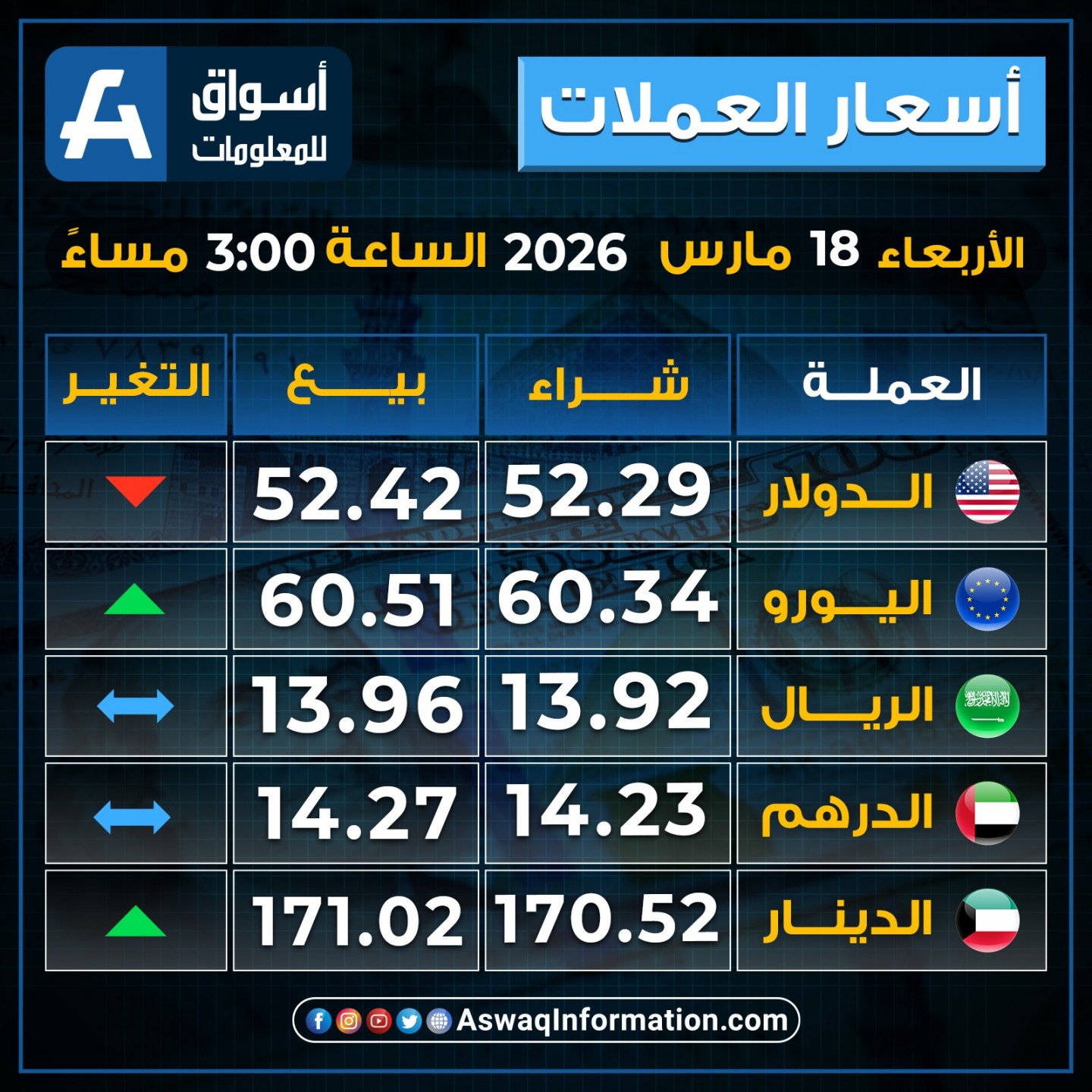 أسعار العملات اليوم