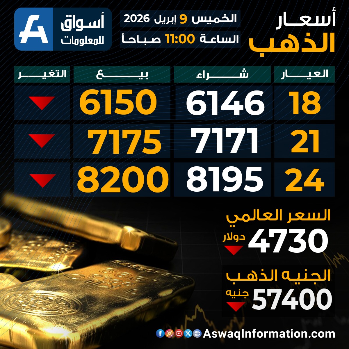 سعر الذهب في مصر الخميس 9 أبريل 2026